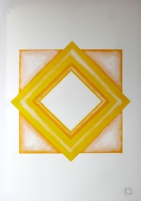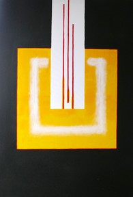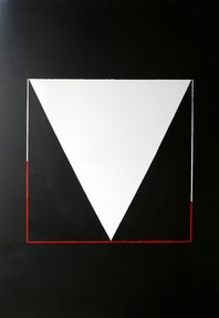 Biały trójkąt wpisany w kwadrat na czarnym tle, 100x70, 2019