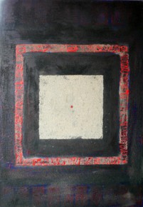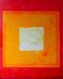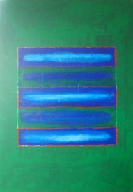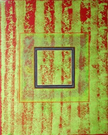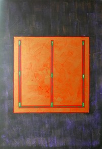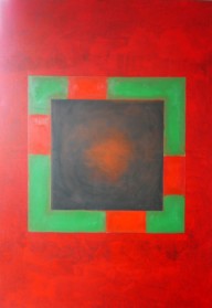 Zielony kwadrat na czerwonym tle, 100x70, 2019